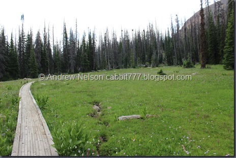 We were getting sprinkled on a little bit, but not too bad. We figured we get to the first lake a decide if we should keep going.