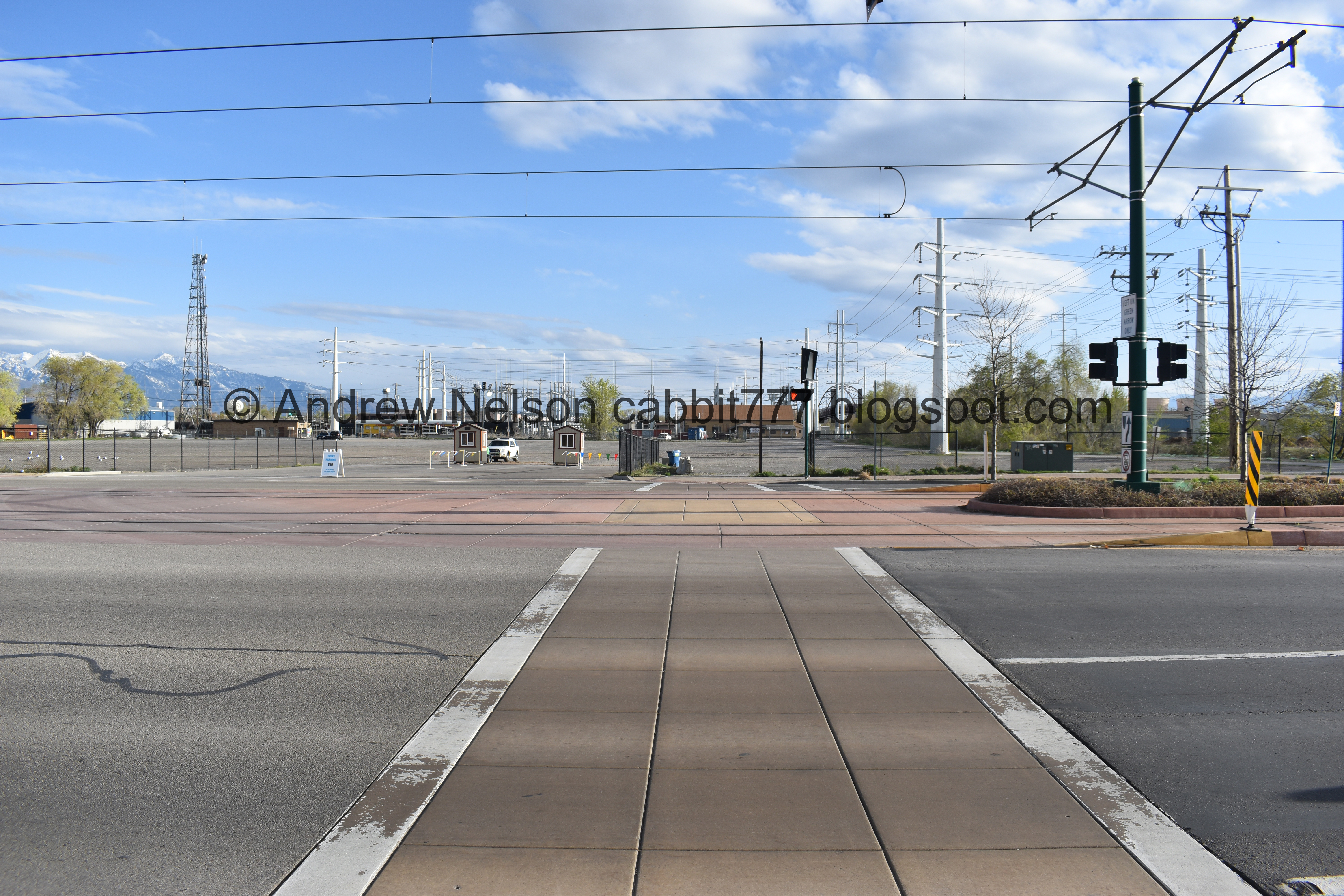 North Temple crossing. There is a dedicated light you can activate to cross safely. But it is still a bit on the scary side.