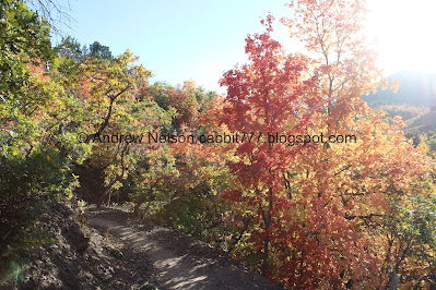 Well, I decided I had had enough. Like I said it wasn’t too bad, but it just seemed to keep going. 1) I wanted to frolic in a colorful forest today, and it did not appear that was going to happen this way. 2) I had no idea where this was taking me. For all I knew it could take us back towards the mouth of the canyon. If I knew what was ahead, I probably could have powered through.
