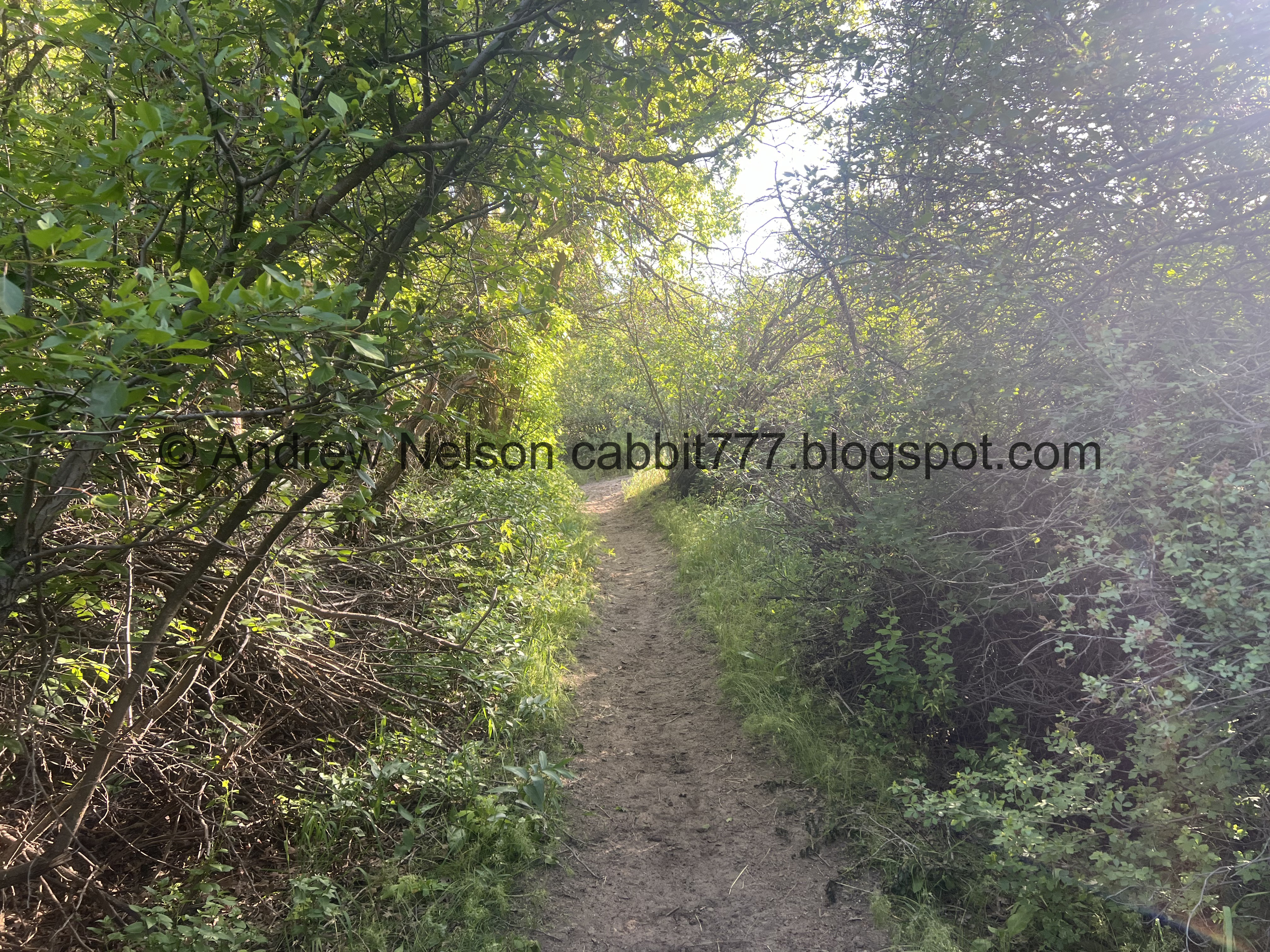 Short narrow path through some bushes.