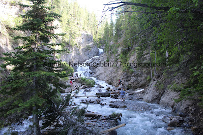 Donut Falls. Wow, it is super gushing! I don’t think I have ever seen it gushing this much. Anyway, you can see the top tier flowing into the hole in the rock, and coming back out underneath, that is the donut.
