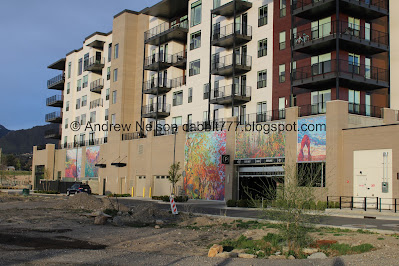 Some neat murals on the south side of this apartment building. We both had snarky things to say. Like: "Here is a picture of trees, instead of… actual trees". And "Here is a picture of the mountains… that this development is going to block the view of". hahaha.